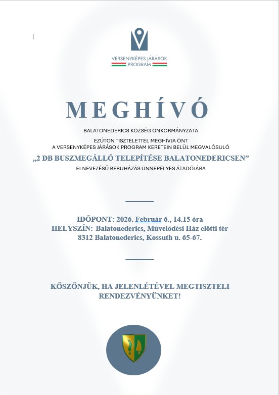 „2 DB BUSZMEGÁLLÓ TELEPÍTÉSE BALATONEDERICSEN”