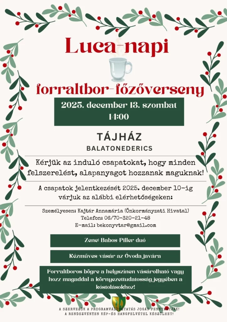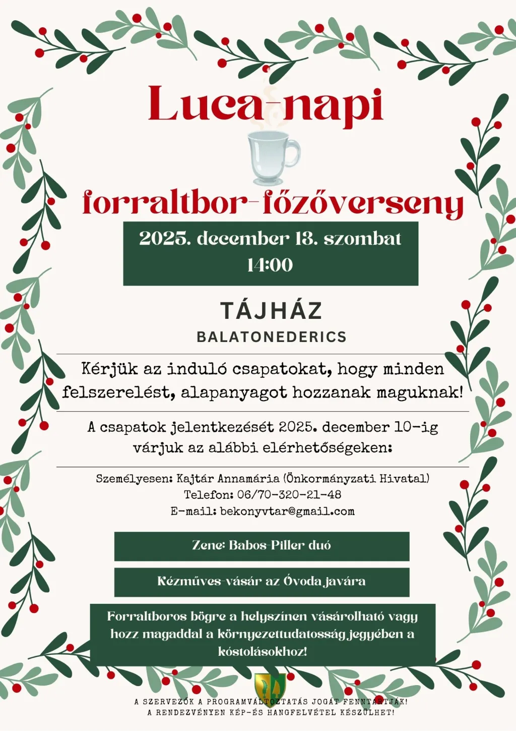 Idén is a TÁJHÁZNÁL, december 13-án szombaton, 14:00-tól szeretettel várunk a Luca-napi forraltbor-főzőversenyre!